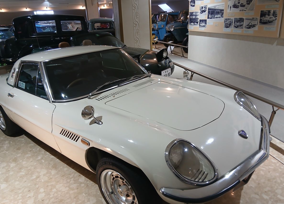 1967年に世界初の量産ロータリーエンジンを搭載したマツダ コスモスポーツとそのエンジンカットモデルがあったのはビックリ。