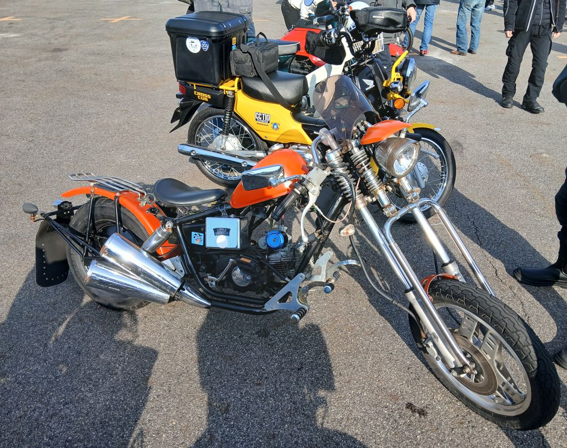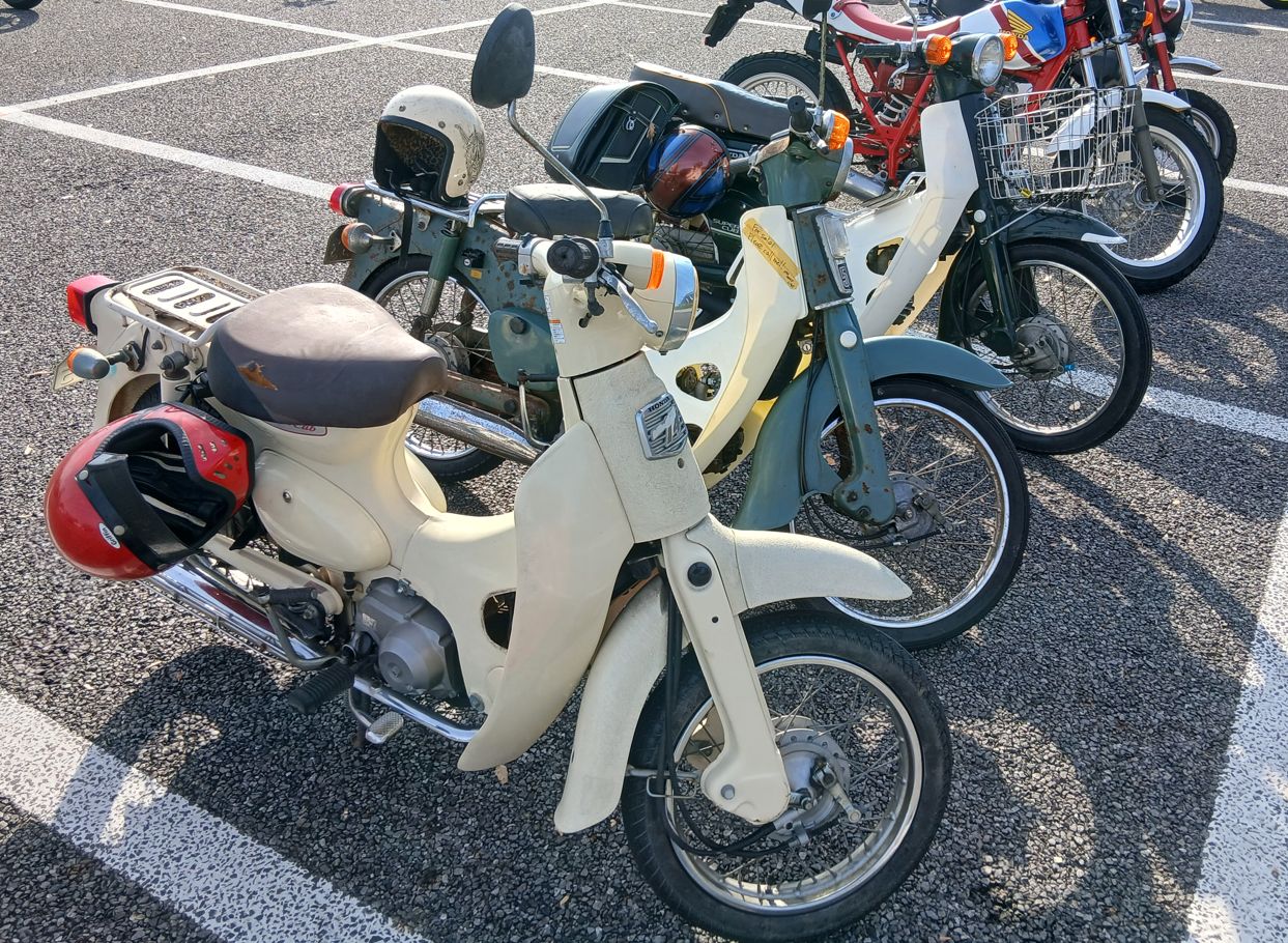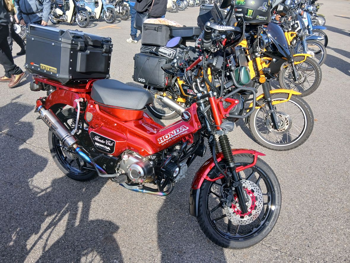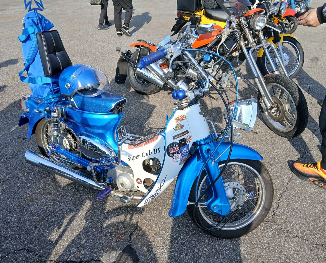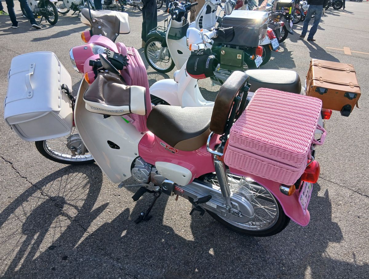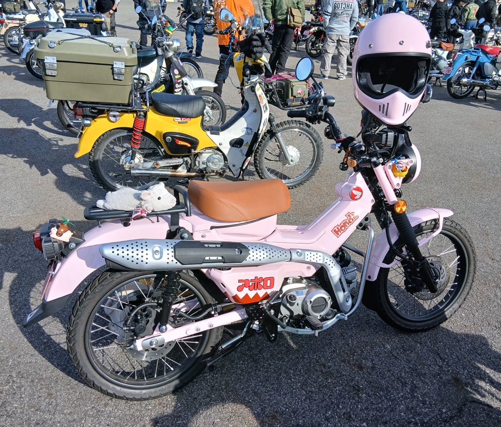 ハンターカブをデコされたものが多い中、ピンク色に統一された女子カブ、ヤンキー風に改良されたカブなど、