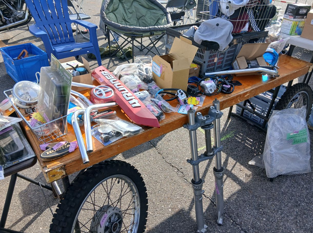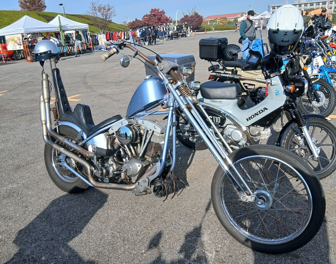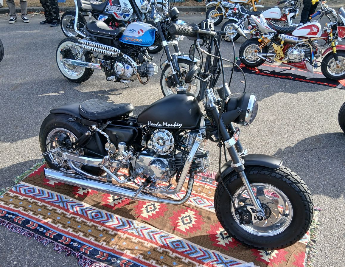 アメリカンタイプやハーレータイプの仔猿(キットバイク)も集まっていて、手作りの部品で組み上げ、塗装にも拘っていて