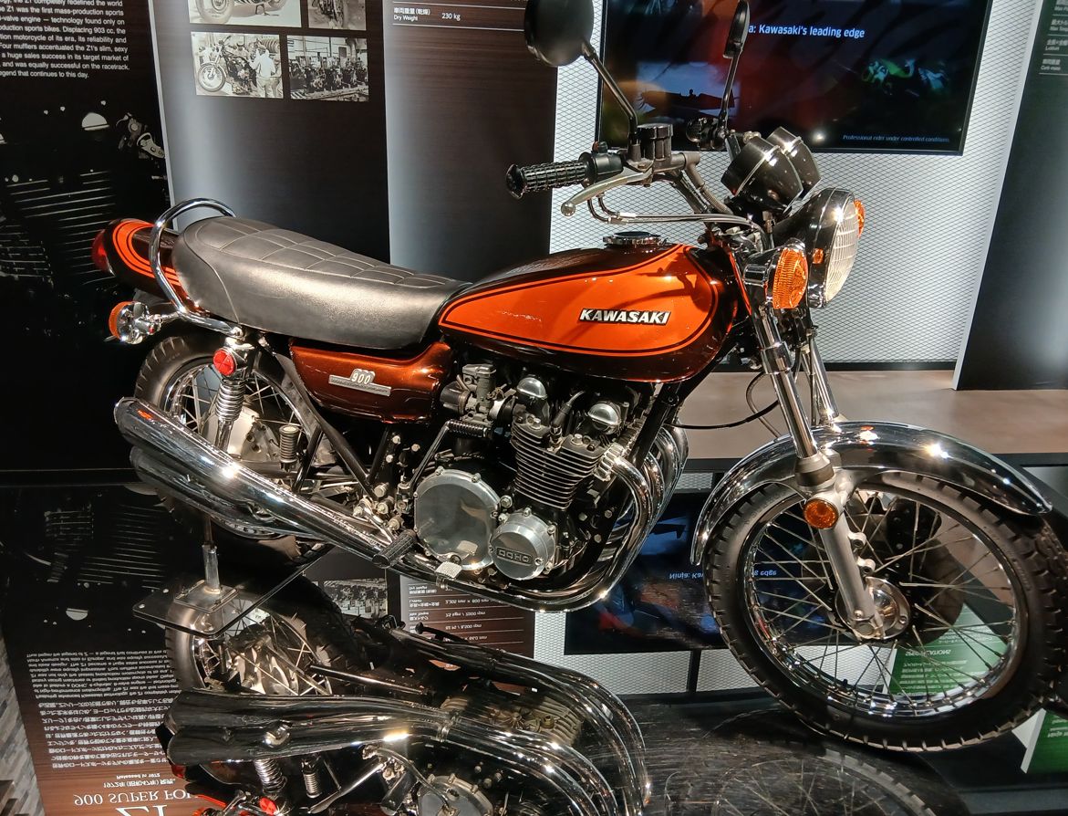 北米向けのホンダCB750FOURの性能を上回るために作られたのがカワサキZ1 900SUPER4(空冷4ストDOHC2バルブ 並列4気筒 最高速209km/hが出来上がる。