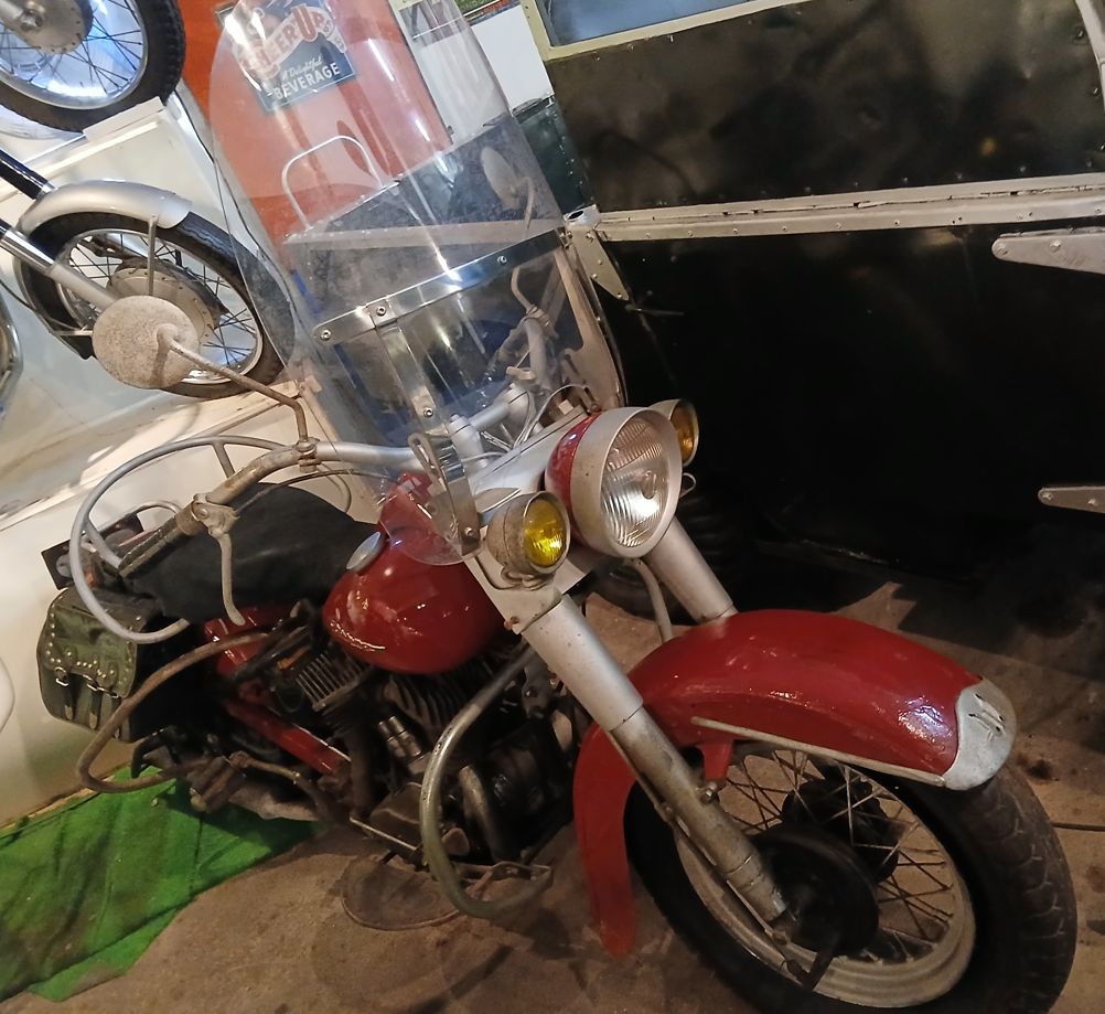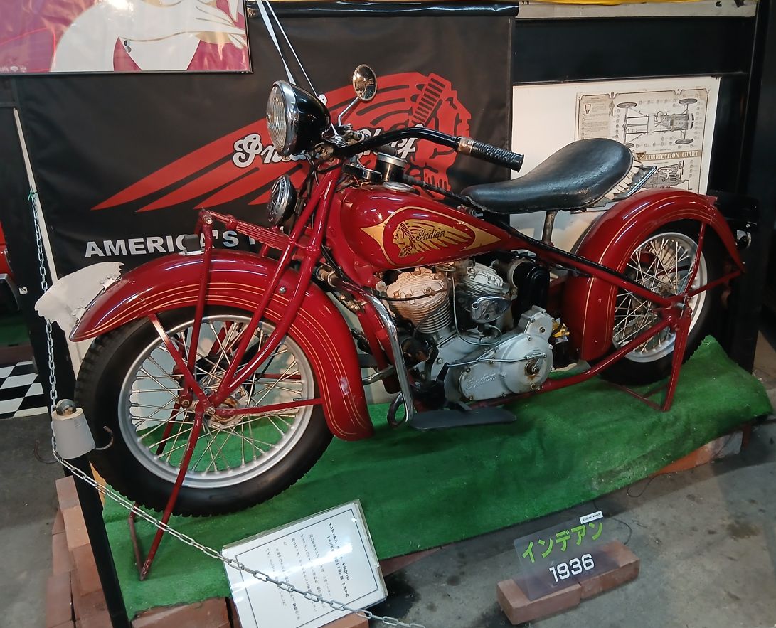 インディアン スカウト750CC(1936年)。大正から昭和の時代、警察の赤バイクとして使用されていた。