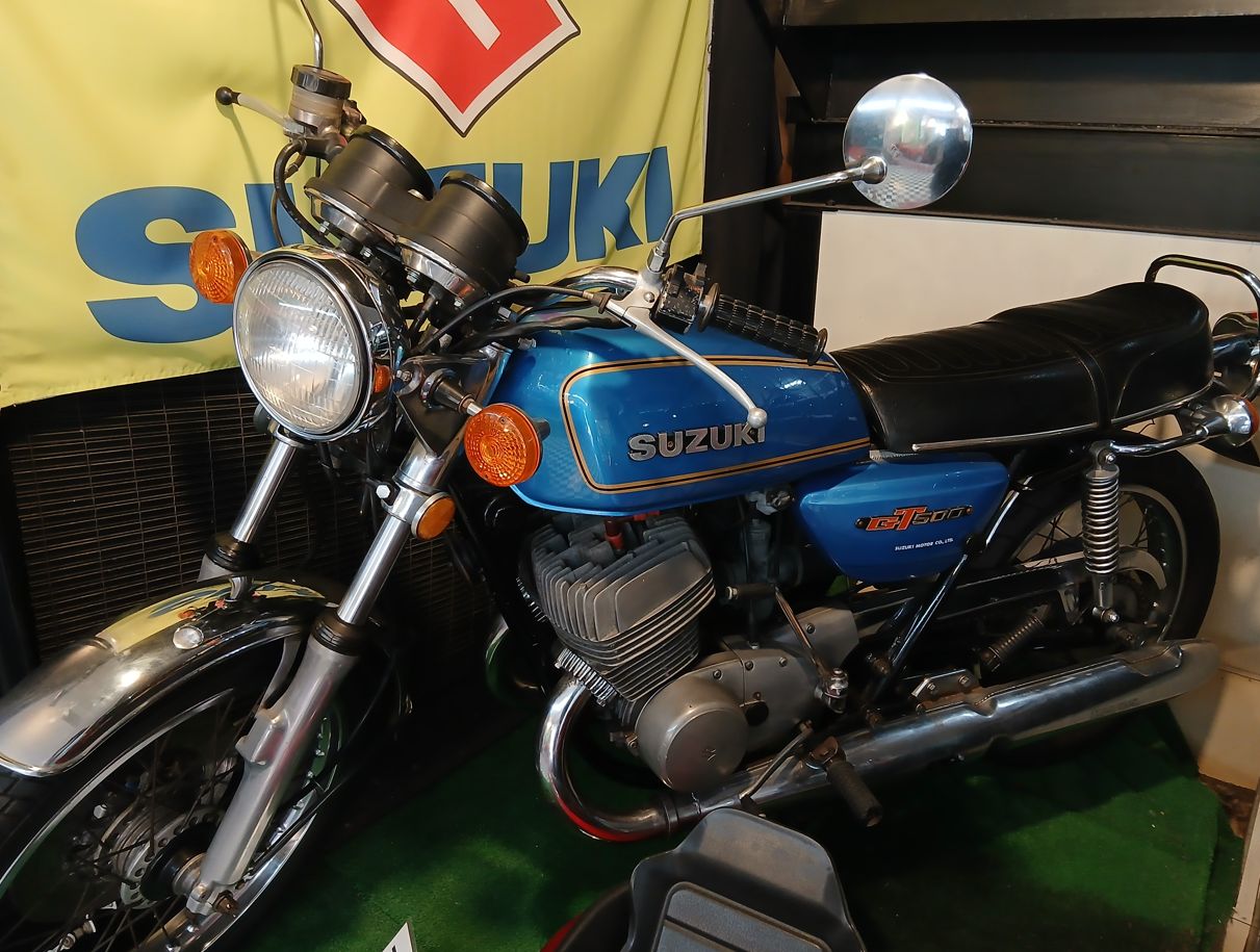 量産車としては世界初の500cc 2サイクル2気筒エンジン搭載したT500の後期GT500。
