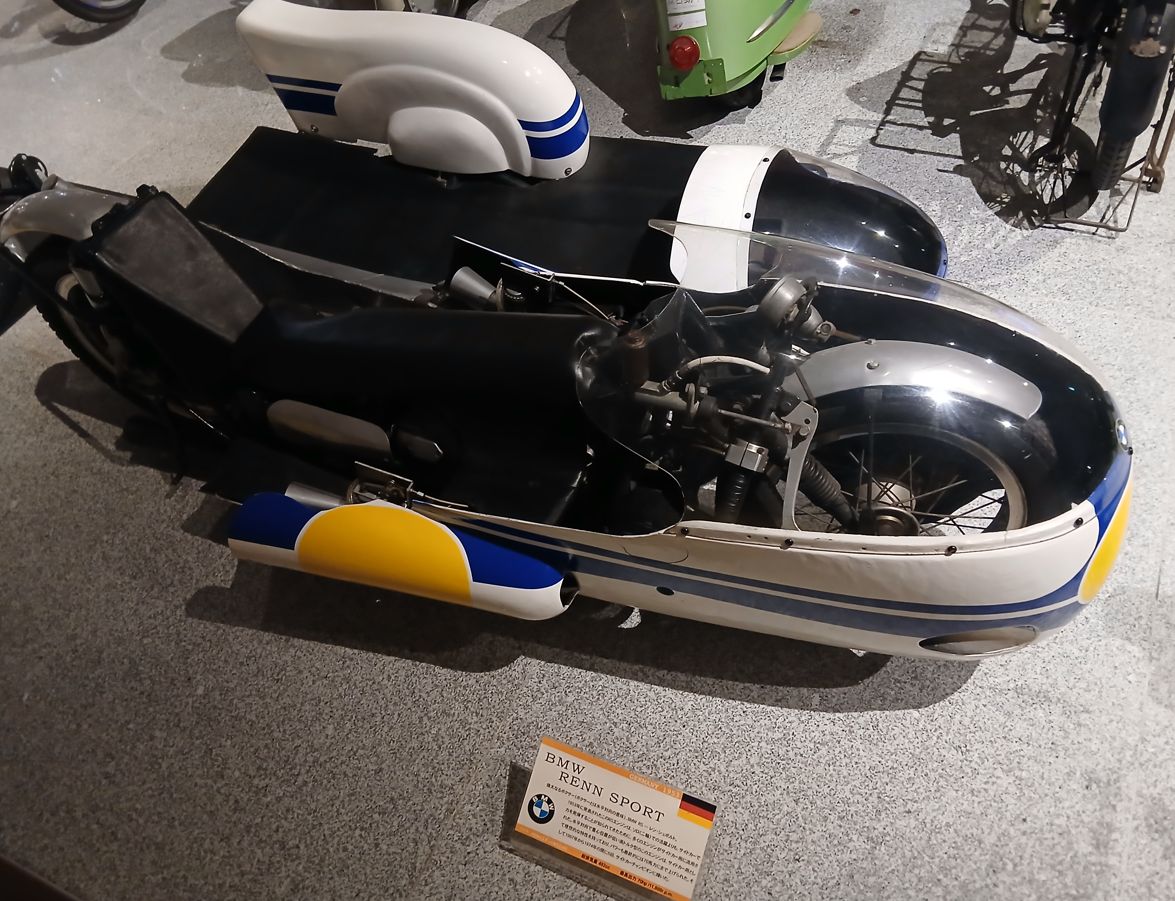 BMW社製のサイドカー付きバイクは、少し未来感がありましたね、なかなか見られないレアものでした。