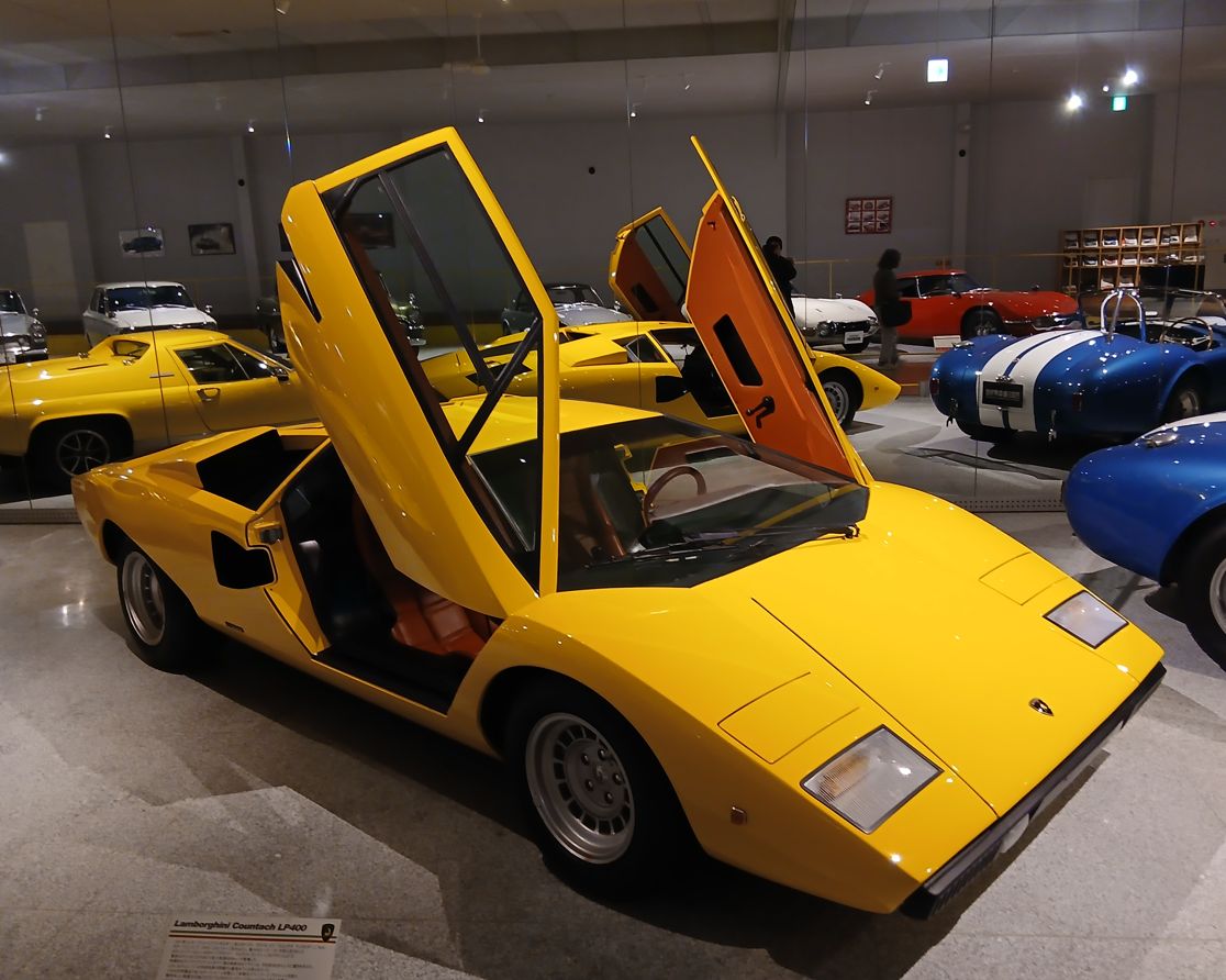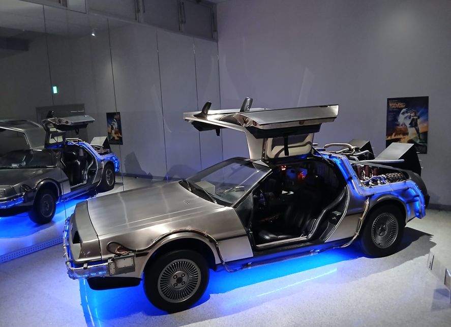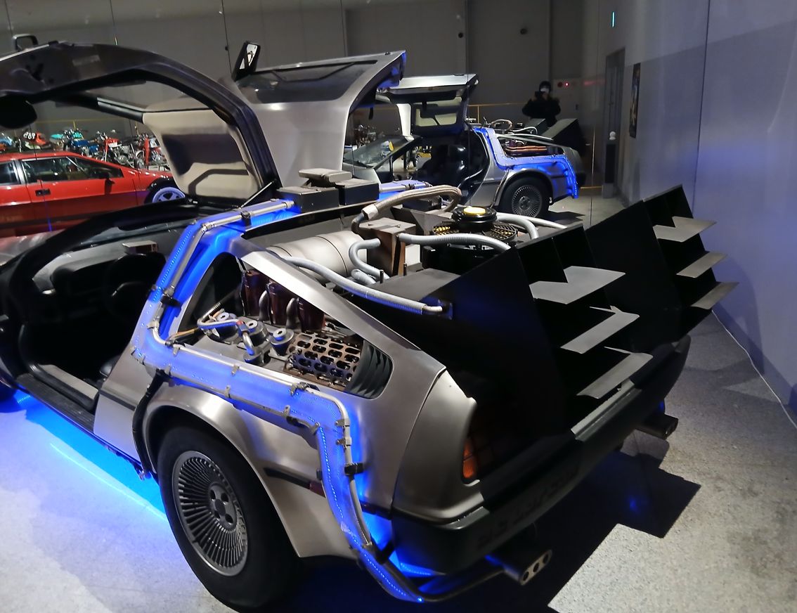 フェラーリがたくさん展示されている中で、映画「バック・トゥ・ザ・フューチャー」に出てくるタイムスリップする車「デロリアン」