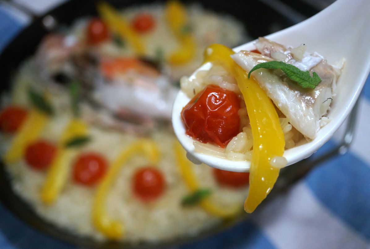 ![]() アカムツの焼霜造りの発展形でカルパッチョ風に。 トマトの酸味がアカムツの脂の甘味と合いますね。 |